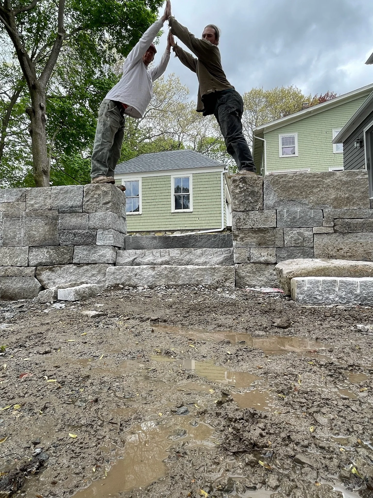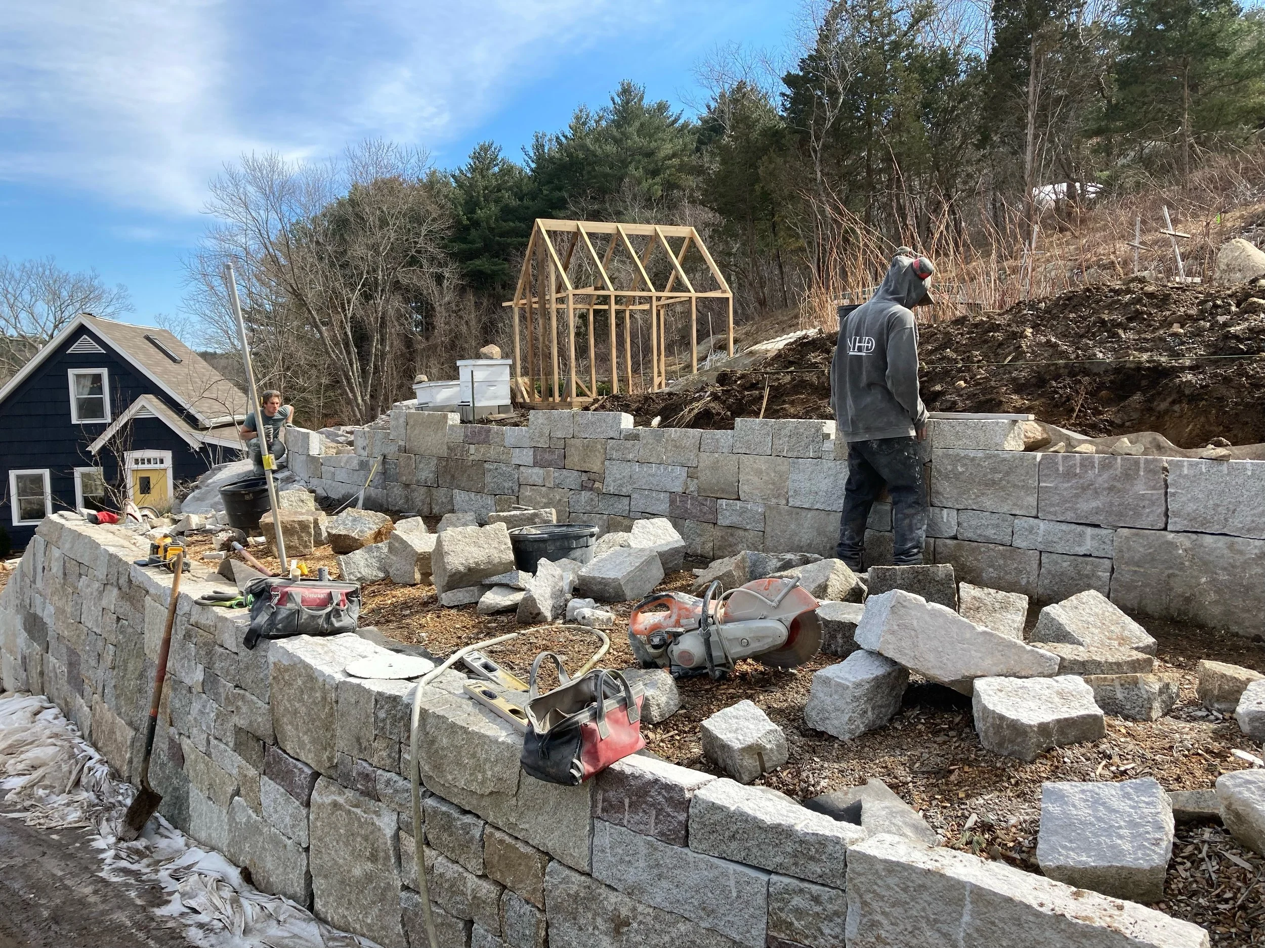We are a design to build company, with our crew taking our landscape plans and bringing them to life. From the initial site work, followed by hardscape elements such as stone walls, patios, decks, and other garden structures to the final bed prep and planting and to finishing touches such as lighting or water features. Our crew members utilize a range of tools in the work we do, from taking onsite elevations with a transit, to using fetters and wedges along with stone saws and other power tools to manipulate stone or construction with wood, to operating heavy equipment such as various size excavators and skid steers, to driving trucks with trailers. We highly value the culture of our crew, over the years our clients consistently comment to us on the positive and professional nature of our crew and how they enjoy seeing a team the truly enjoys both the work they do and the people they do it with.